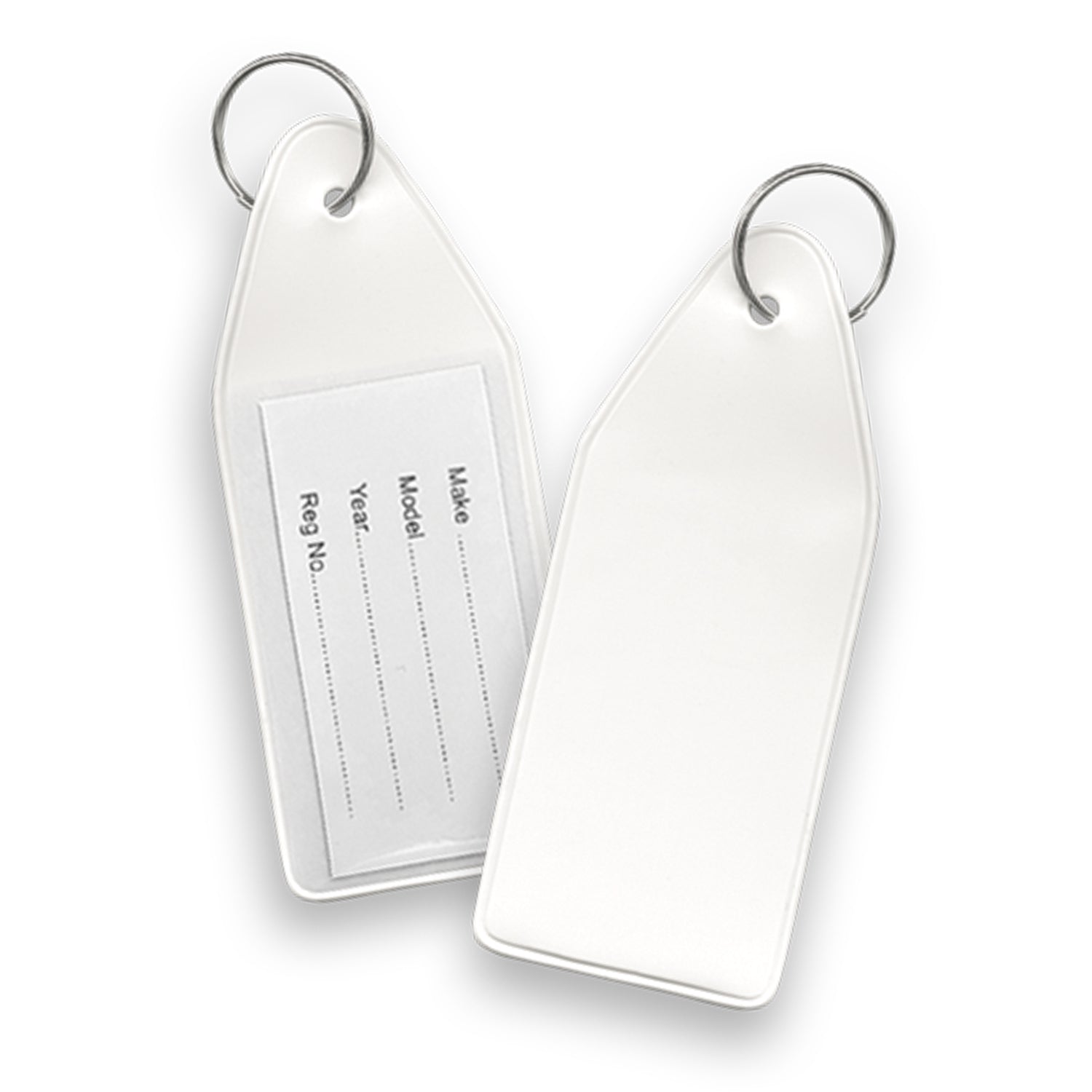 Flexible vinyl key tag with a removable cardboard insert which slips into the back of the key ring. It is ideal for recording vehicle information and there is plenty of room for branding on the front.