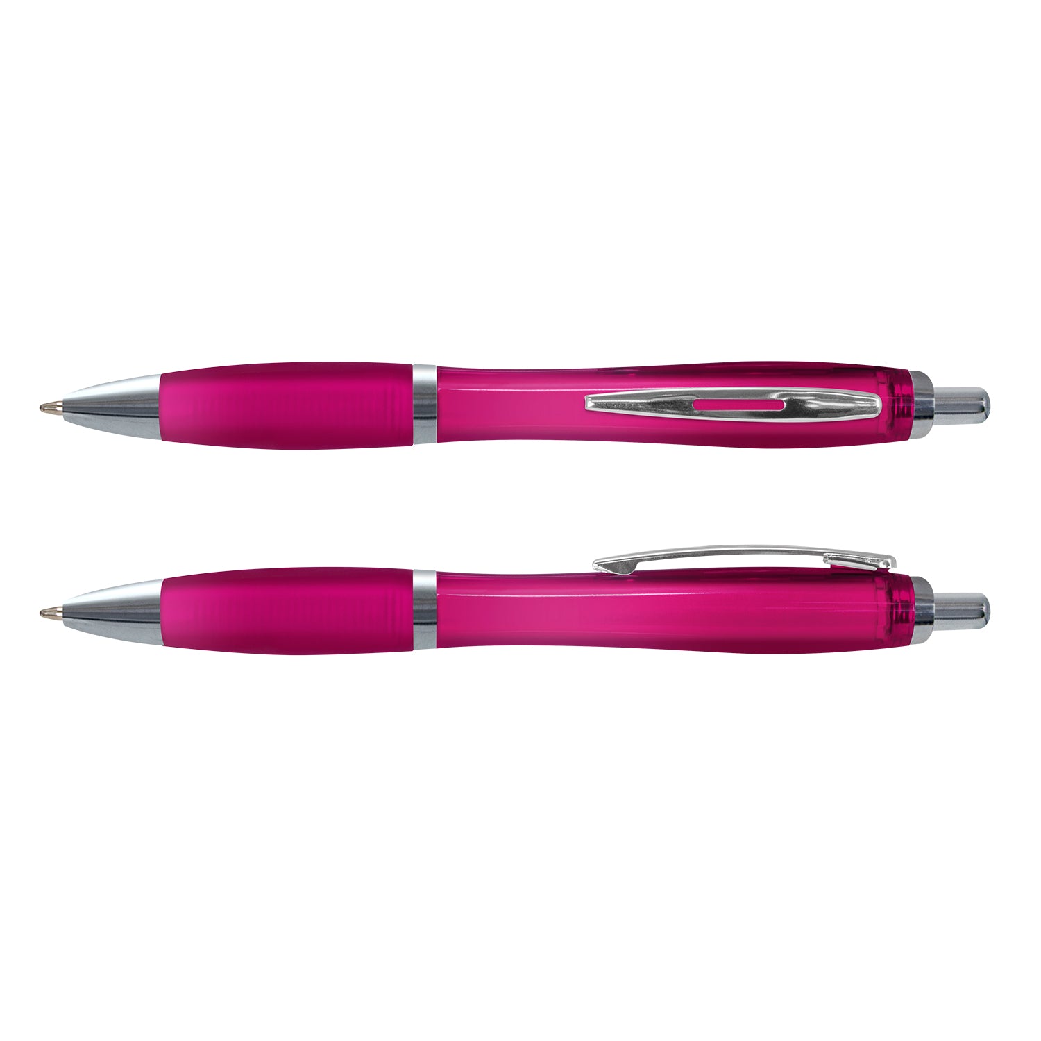 Retractable plastic ballpoint pen with a translucent barrel, a frosted translucent soft-touch grip and shiny chrome trim. It has a black large volume refill with 1800 metres of German manufactured Dokumental ink and can be presented in an optional pen sleeve.