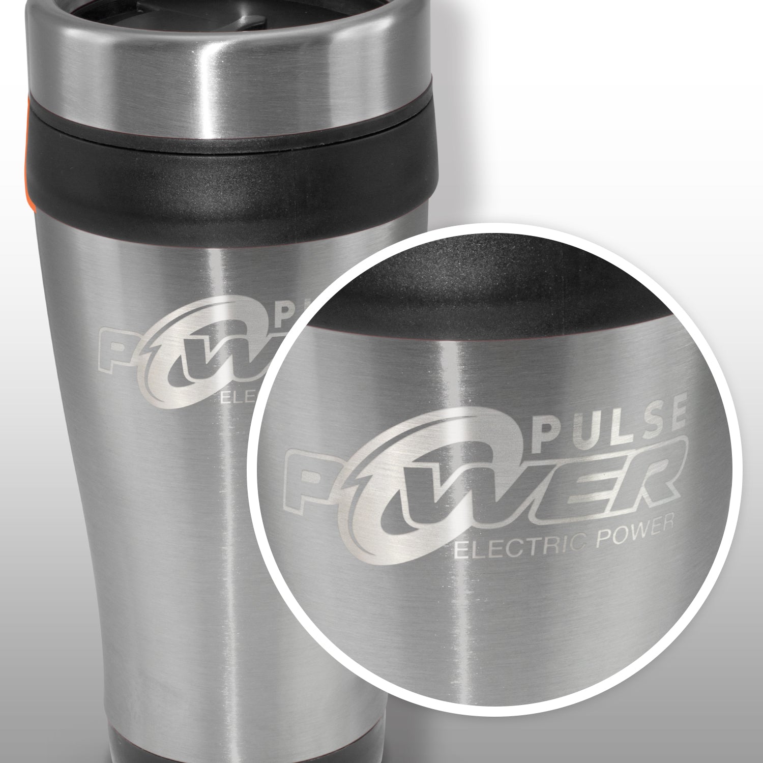 Contoured 350ml double wall travel mug which will keep drinks hot for longer. It has a stainless steel outer wall and a polypropylene inner wall. Aspen has a secure screw on lid with a splashproof sliding closure. It laser engraves to a natural etch and is BPA-free. This product is not dishwasher safe and handwashing is recommended.