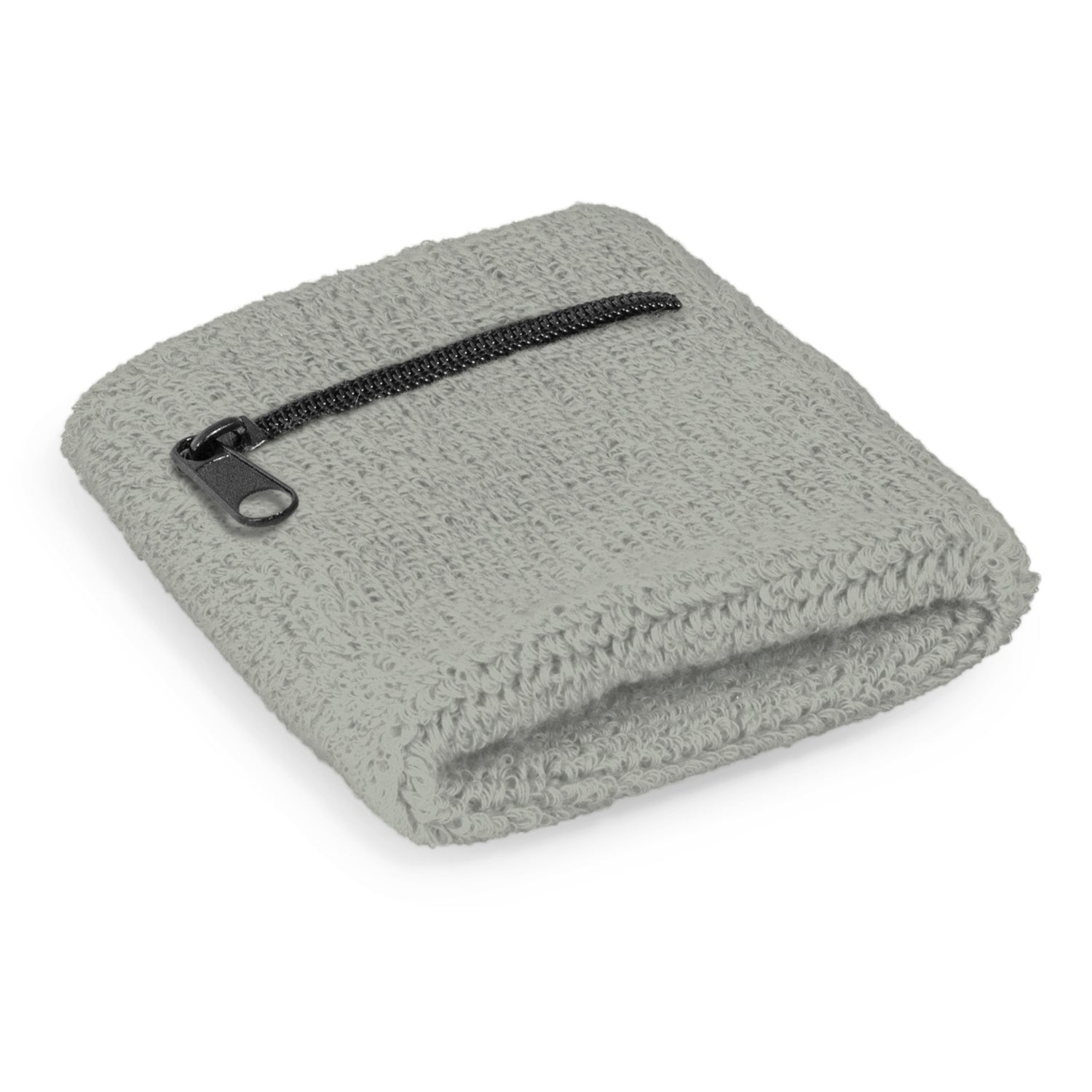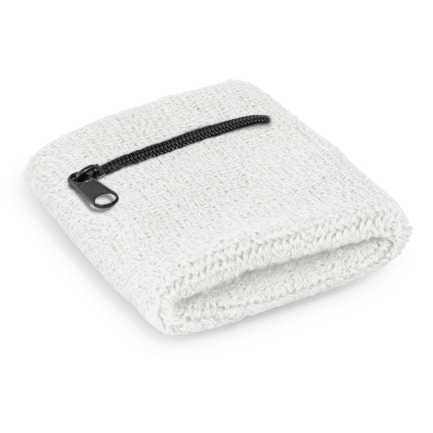 Stretchy towelling wrist sweat band with a secure zippered pocket for keys, cash, earbuds etc. It is manufactured from 80% cotton with 12% elastic and 8% polyester. A production lead time of 25 working days applies to this product by air freight and larger orders can be sea freighted on request to reduce the freight cost.