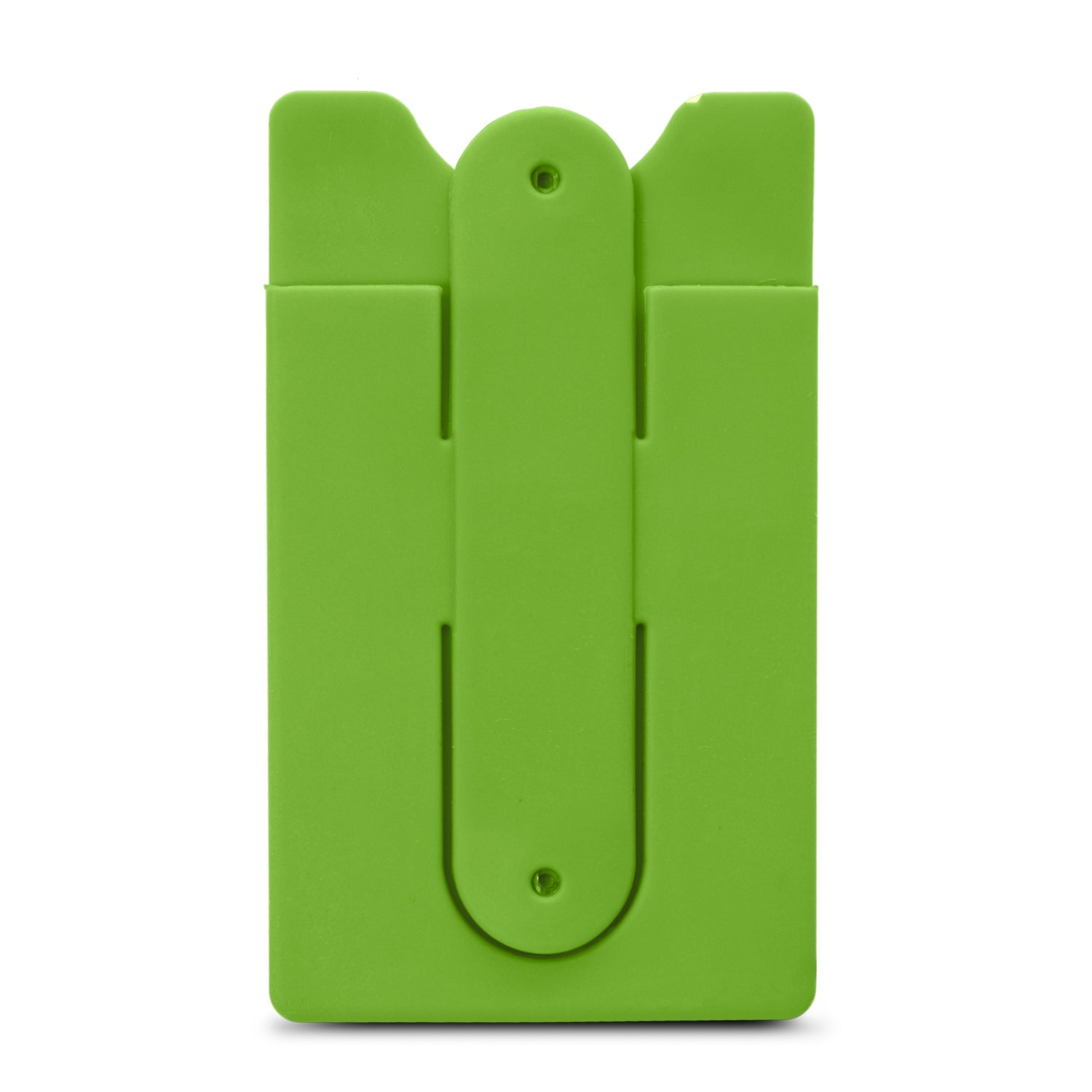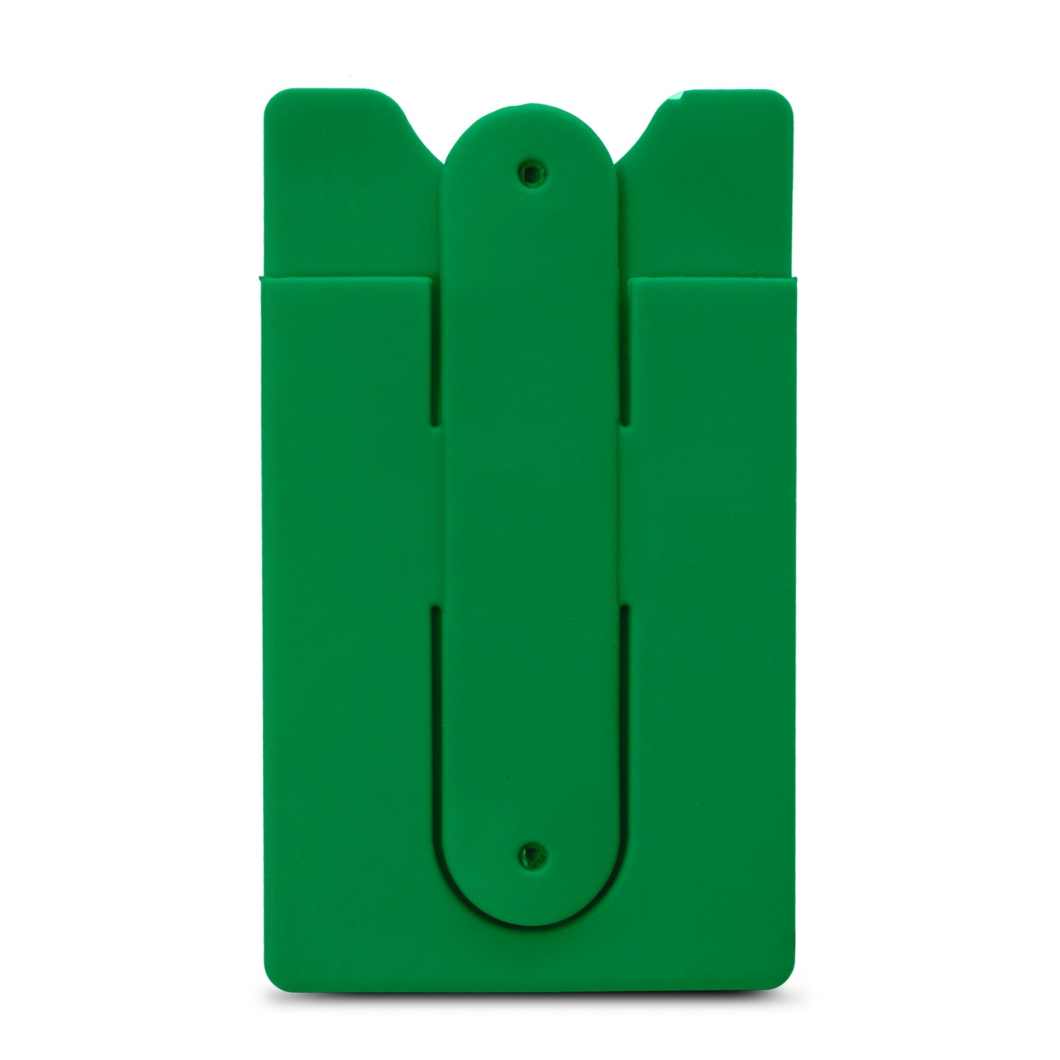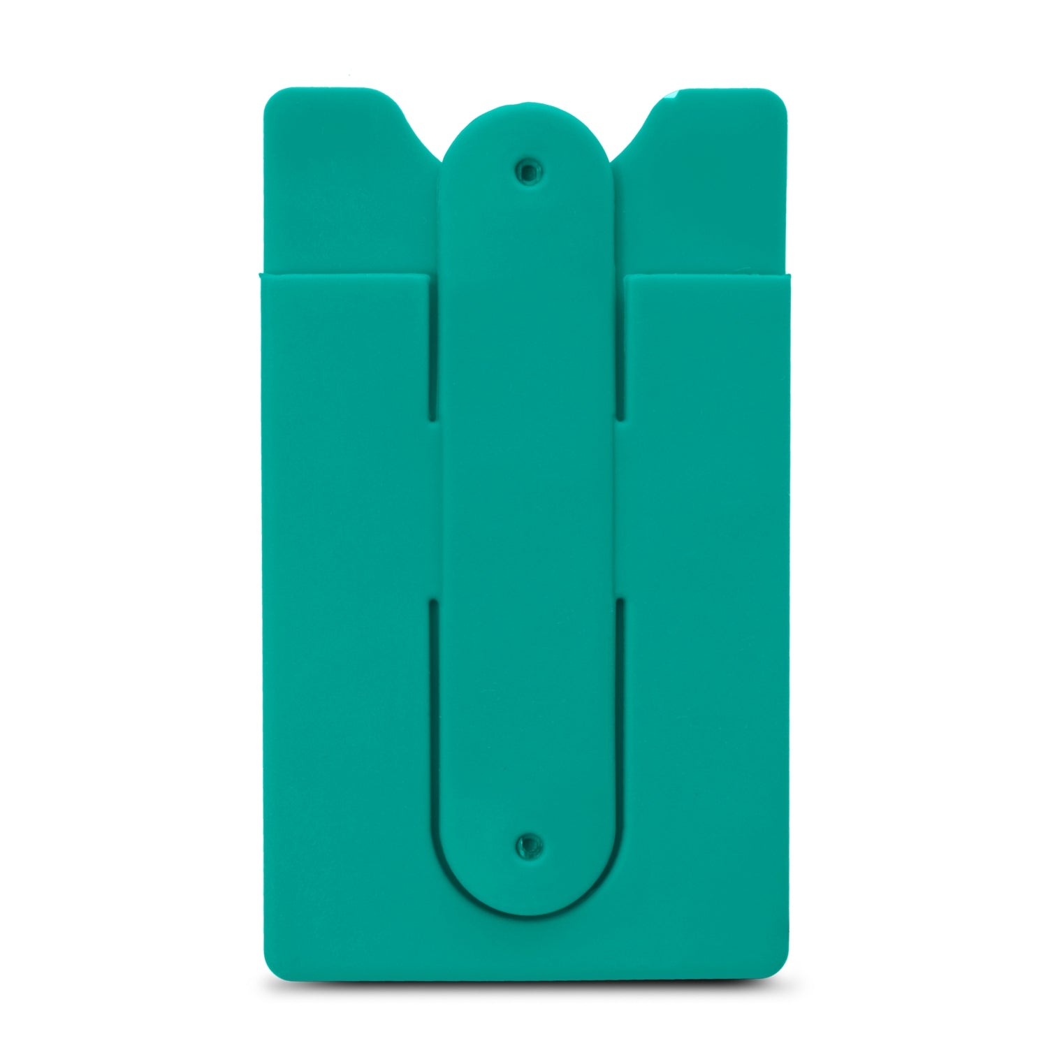 Soft touch silicone wallet with a handy snap out phone stand which adheres to the back of a phone or phone case with strong adhesive that won't leave marks if it is removed. It is ideal for holding a drivers licence, ID, hotel key, credit card or business cards. A production lead time of 25 working days applies to this product by air freight and larger orders can be sea freighted on request to reduce the freight cost.