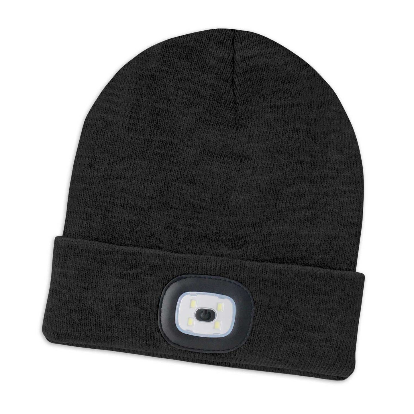 Radical knitted acrylic beanie with twin layer construction for extra warmth, a roll up cuff and a unique built-in head lamp. The lamp has three light settings and uses futuristic COB (Chip-on-Board) technology which increases both the light intensity and the battery life. The headlamp is easily recharged via USB port or mains adaptor. It is supplied with an instruction leaflet.