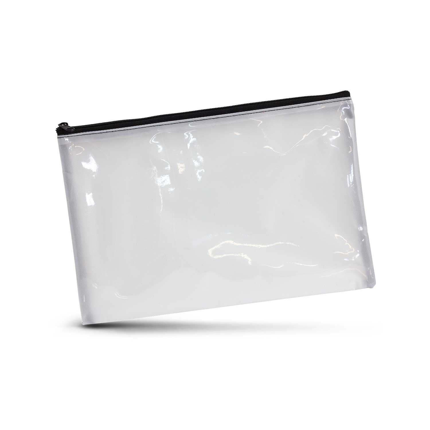 Medium size cosmetic bag which is manufactured from soft transparent plastic. It has a black zippered closure with black stitching and a polyester lining which can be branded in full colour on both sides at no extra cost. A production lead time of 20 working days applies to this product by air freight and larger orders can be sea freighted on request to reduce the freight cost.