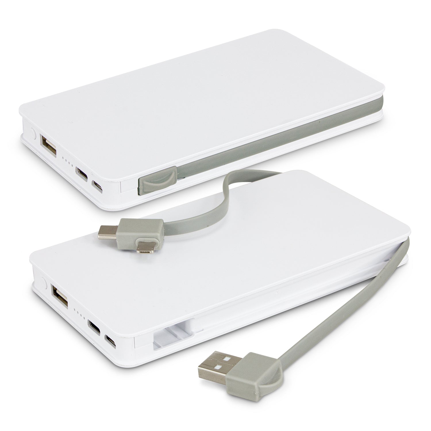 State-of-the-art 5W wireless charging power bank that can charge two devices at once. It will charge devices that are enabled for wireless charging simply by placing them on top of the power bank. It also offers conventional charging for almost any phone with a wraparound cable that fits neatly into the housing. It has a Type-C connector and a unique double-sided connector with Lightning on one side and Micro-B USB on the other. The cable is also used for recharging the power bank from a USB port or a mains adaptor. Jarvis has 5000mAh of power storage, an input power of 5V/2A and an output power of 5V/2.4A. It is presented in a white box with an instruction leaflet and an optional EVA carry case is available on request. Please note that some phone cases may affect the wireless charging connection.