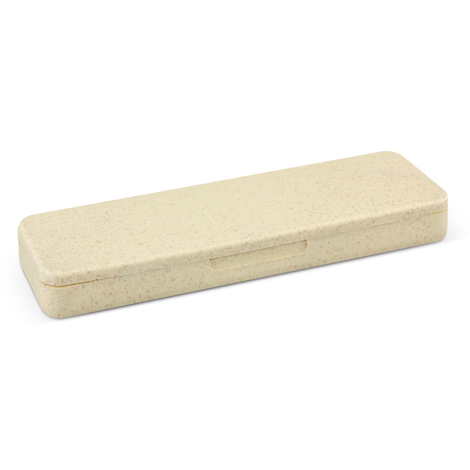 Unique cutlery set which is manufactured from a 50/50 blend of natural wheat straw fibre and BPA-free polypropylene. The set is presented in a rectangular case and includes a knife, fork and spoon. Branding is on the case.