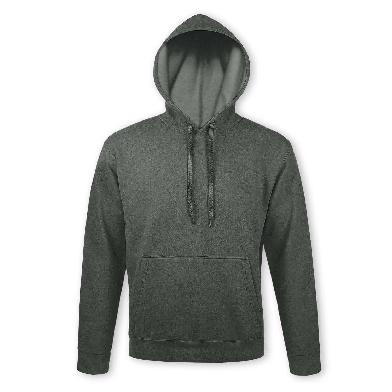 Versatile 280gsm fleece-lined adult sweatshirt which is manufactured from a 50/50 blend of ring-spun cotton and polyester with ribbed elastane on the hem and cuffs. It has set in sleeves, a large kangaroo pocket on the front and a tone-on-tone drawstring in the hood. The brushed fleece lining gives the garment a soft and cosy feel while adding extra warmth. It is a European fit and is available in eight sizes. The sweatshirt provides an excellent branding opportunity that will appeal to a broad market.