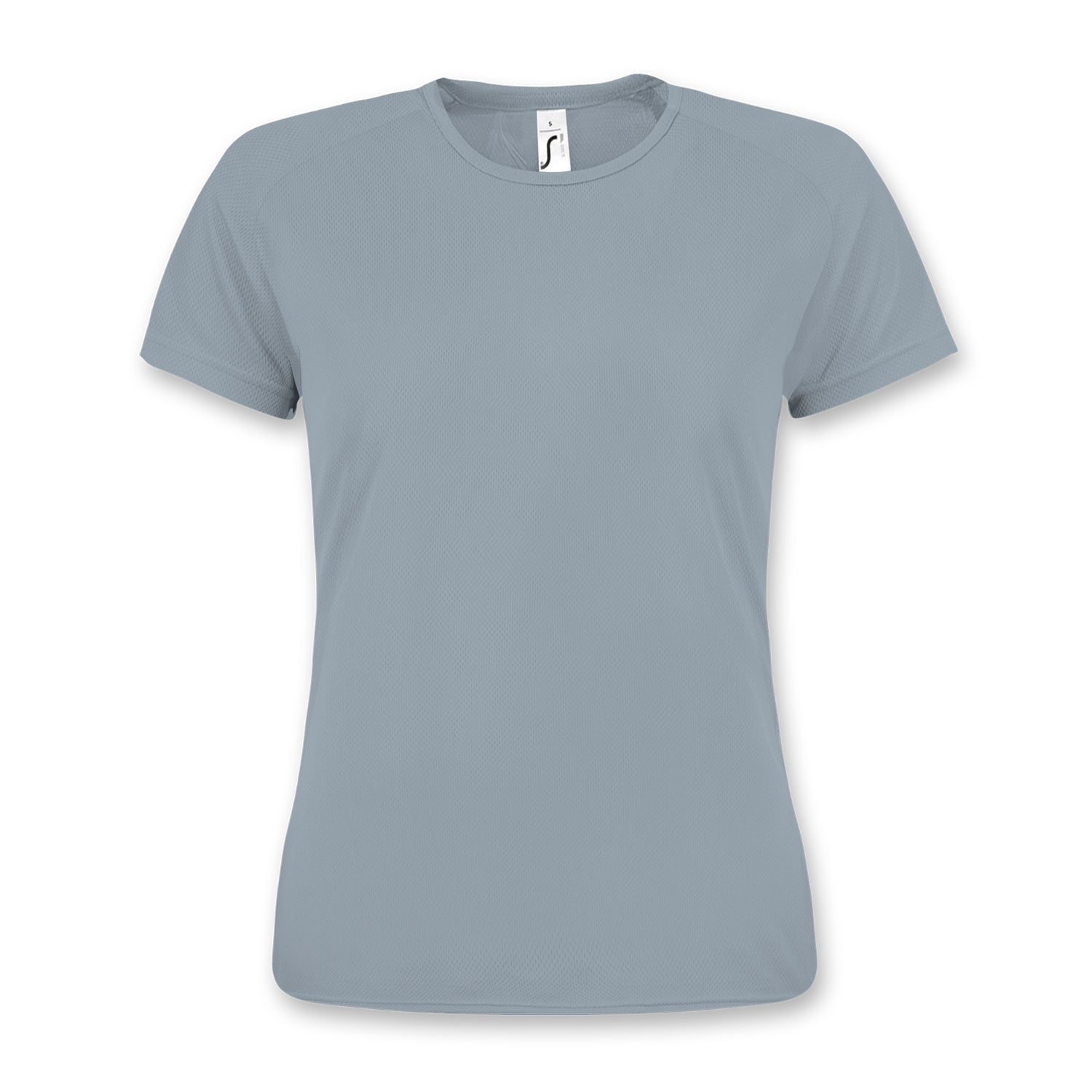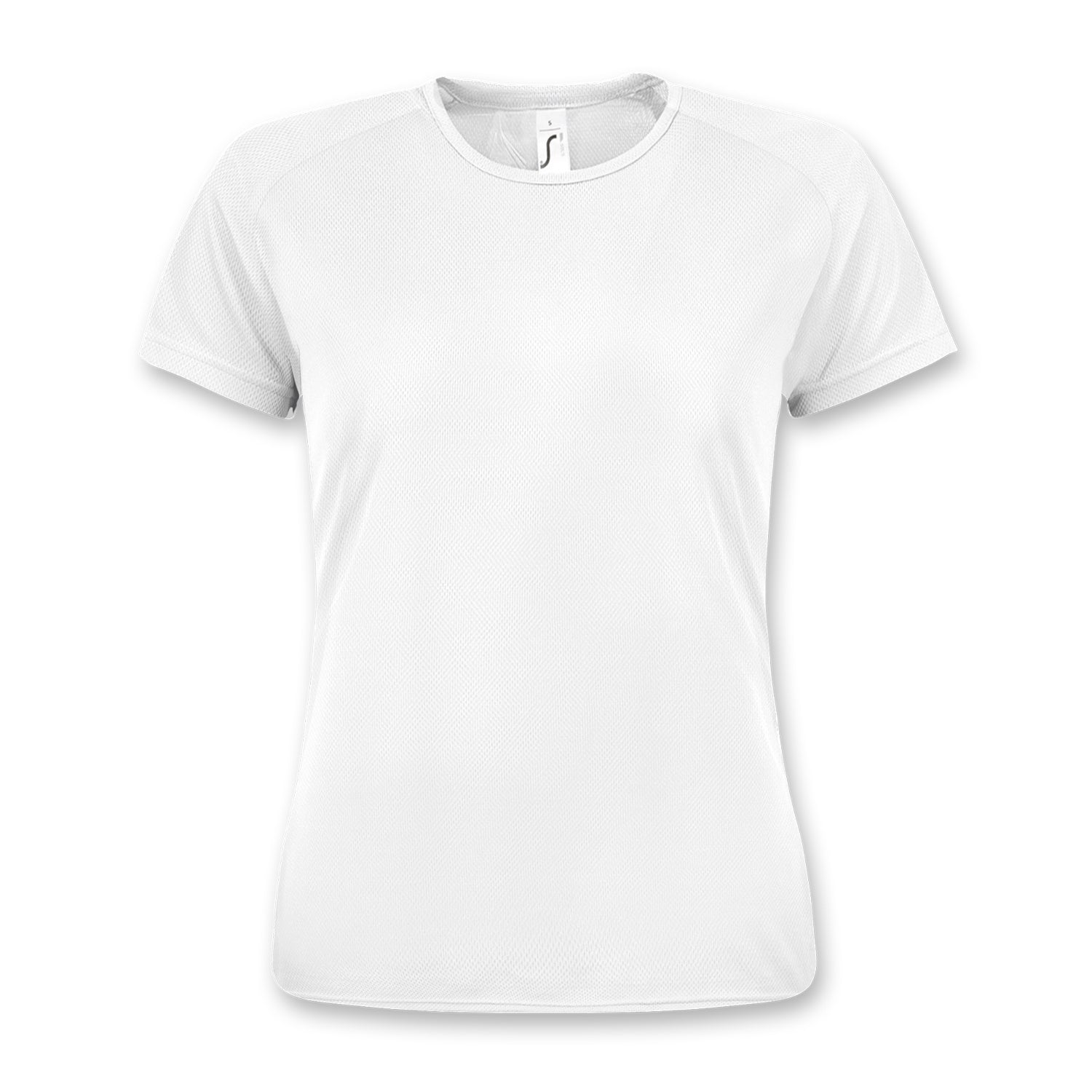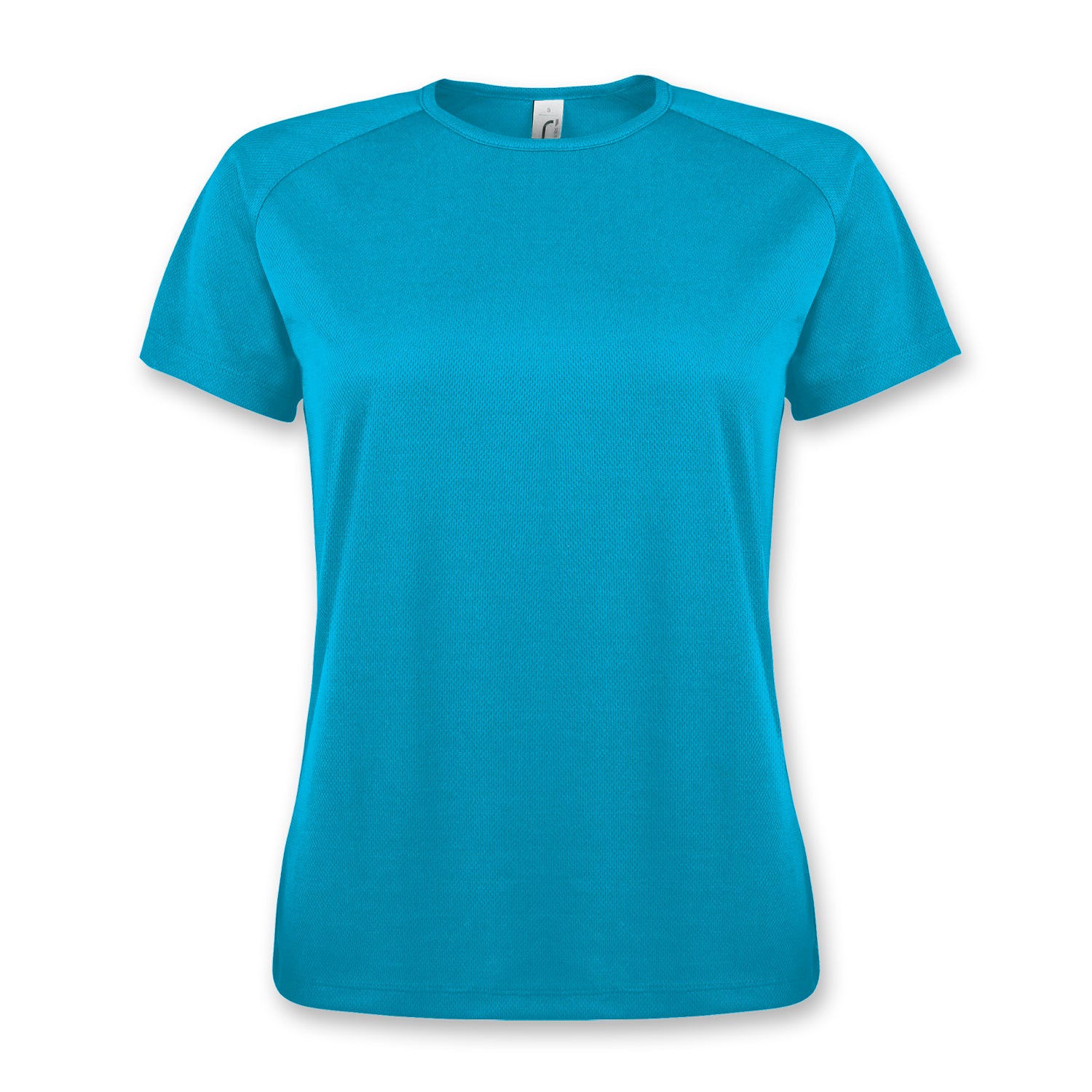 Extremely lightweight 140gsm cut and sewn women's sports t-shirt with raglan sleeves. It is manufactured from moisture wicking polyester mesh which is breathable, fast-drying and perfect for dry fit activewear. Binding on the collar and arms add strength and structure to the garment. The t-shirt is a European fit and is available in seven sizes.