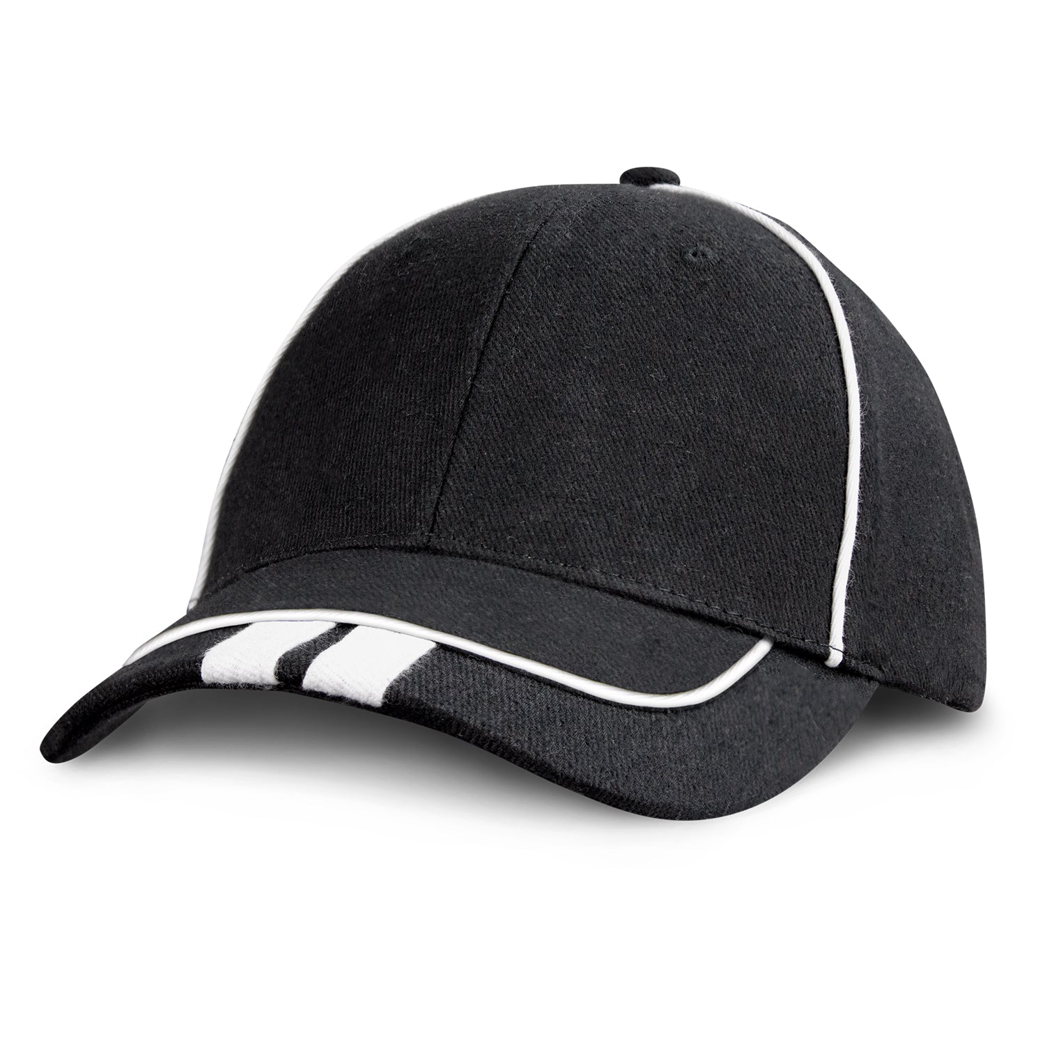 Fully customisable six-panel cap which is made from cotton twill and features an embroidered design on the peak and piping details on both the peak and cap. The colour of the cap fabric and the embroidery feature can be customised using colours from the standard colour palette. Other features include embroidered eyelets, a pre-curved peak, a sweatband and an adjustable snap closure which allows one size to fit most people. A production lead time of 35 working days applies to this product by air freight and larger orders can be sea freighted on request to reduce the freight cost.