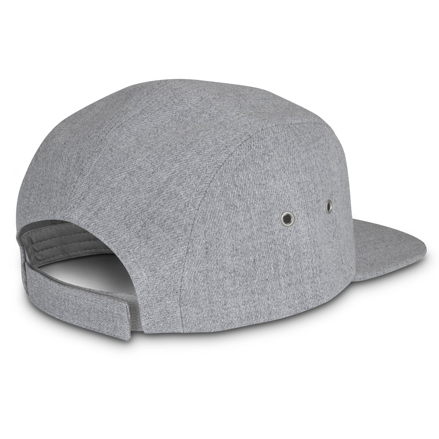 Stylish, five panel cap with a flat peak and a two-tone heather finish. It is made from acrylic and has smart silver eyelets, a sweatband and an adjustable Velcro closure which allows one size to fit most people.