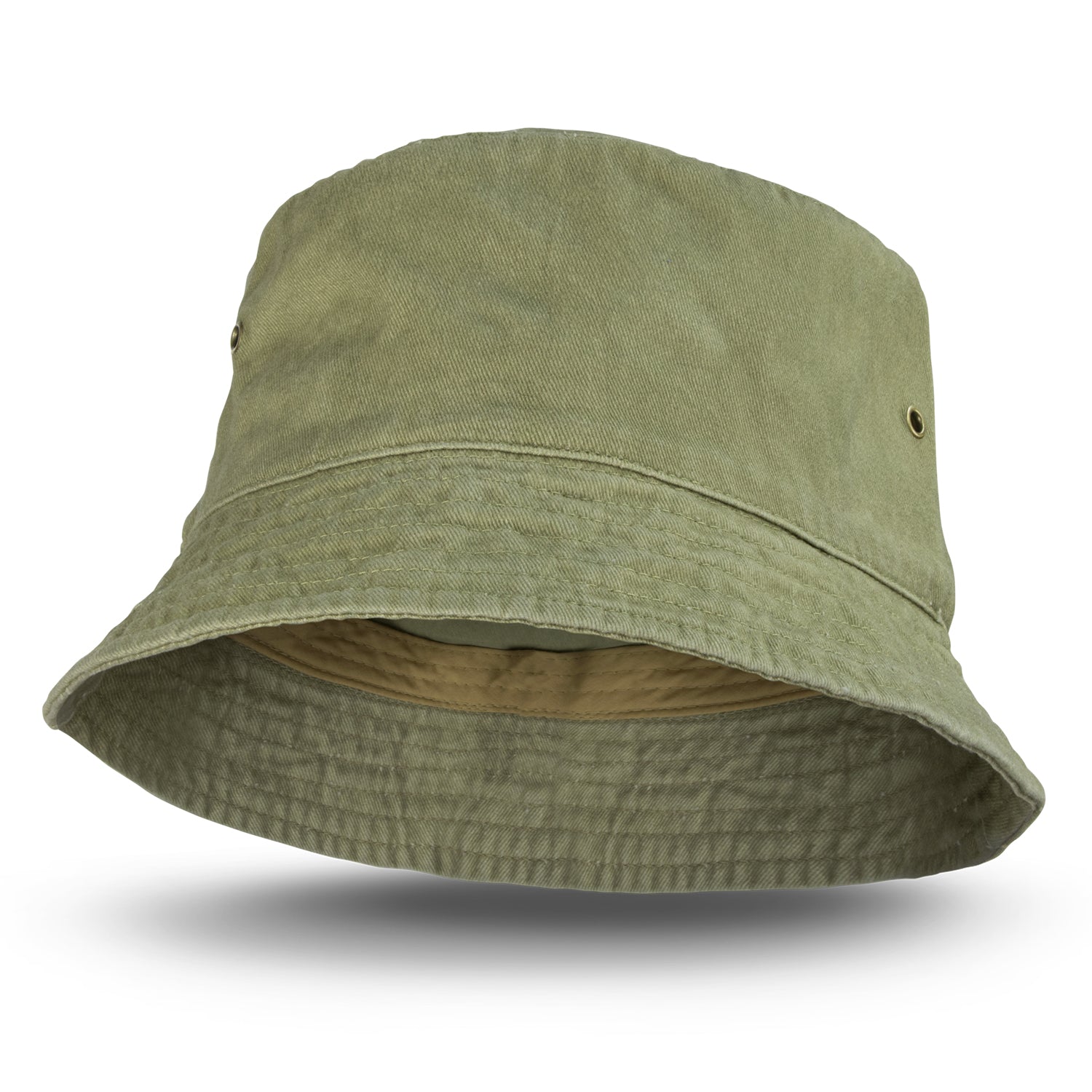 Premium bucket hat which is made from fashionable faded cotton twill with a sweatband and gunmetal eyelets. It is available in two sizes which will fit most people.