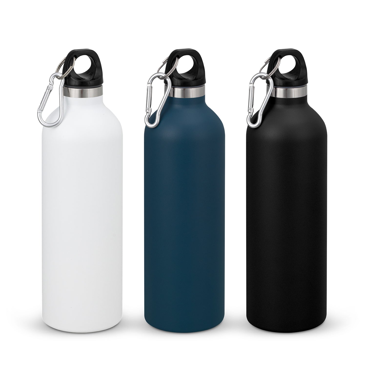 600ml double wall, vacuum insulated stainless steel bottle with a stunning powder coated finish and will keep drinks cold for 24 hours or hot for up to 12 hours. Intrepid is BPA-free and features a secure screw on metal lid. The lid features a carry handle and carabiner so the bottle can easily transported and attached to a bag. Intrepid laser engraves to a shiny steel finish and is presented in a black gift box. This product is not dishwasher safe, and handwashing is recommended.