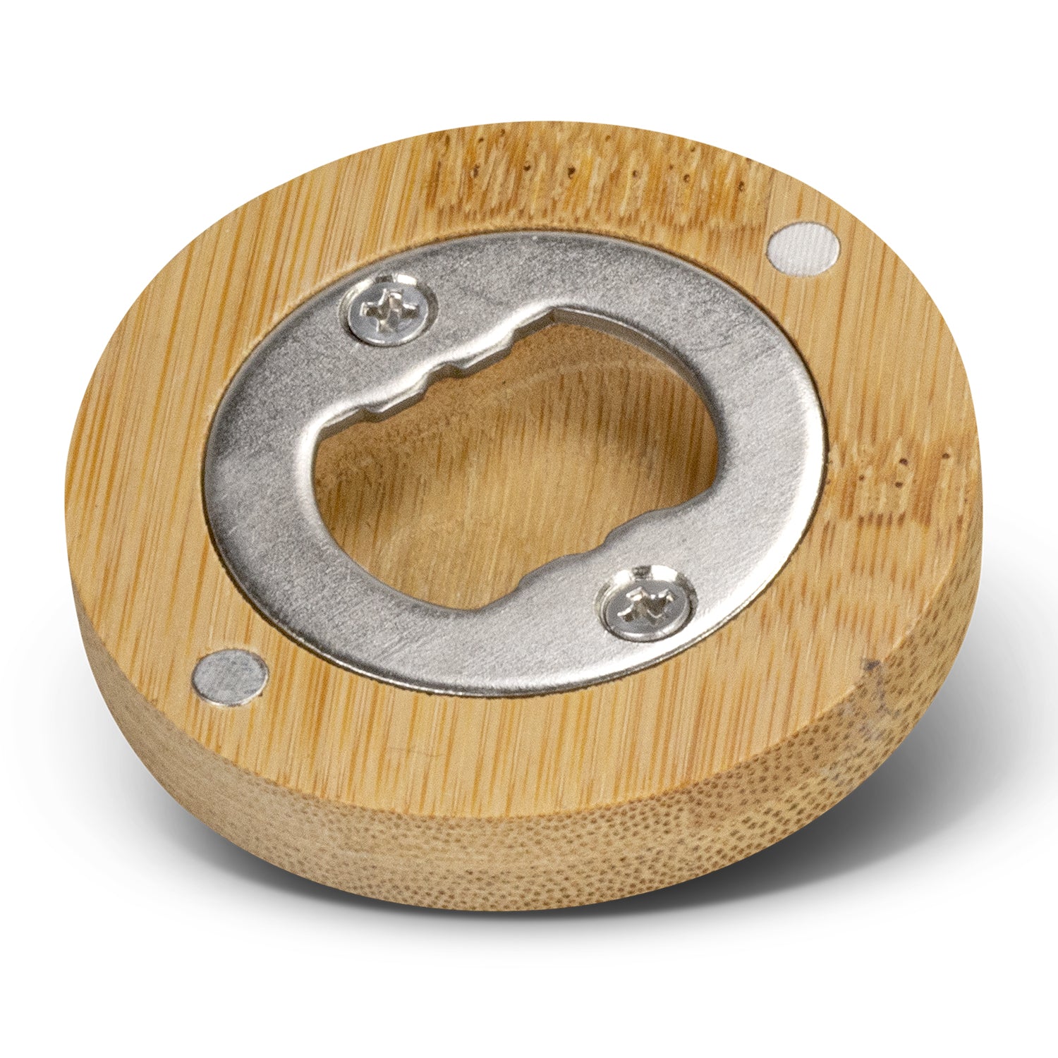 Classic Stainless Steel bottle opener with a natural bamboo casing. The bottle opener is magnetic so it can be attached to any magnetic surface. Bamboo is a natural material and because the plant is fast growing, it places less demands on natural resources and produces a material that is durable and versatile. Bamboo can also produce unavoidable variances in the grain pattern, colour and branding.