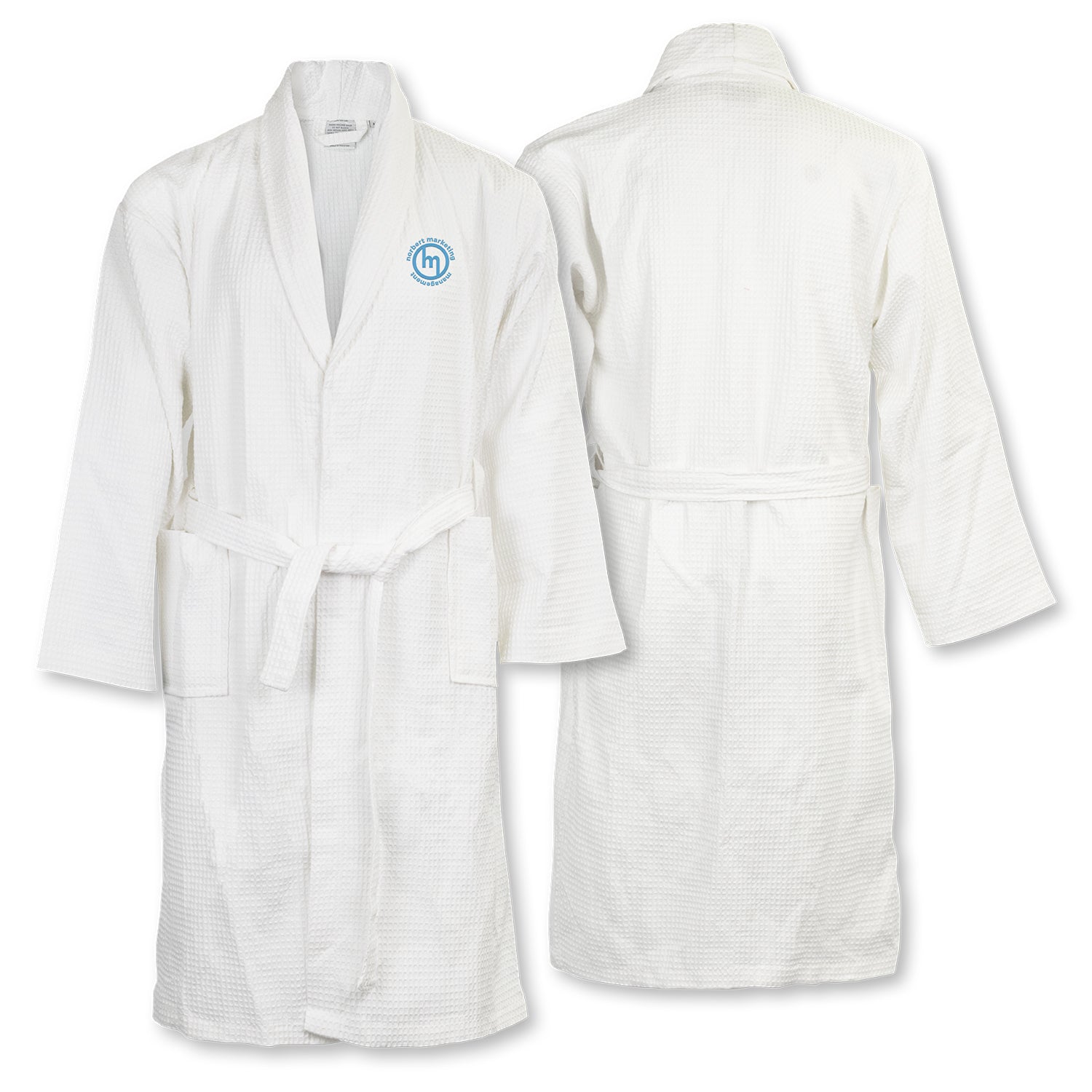 The Rochester Waffle bathrobe is perfect for use year-round. Made from 240gsm 100% cotton in a traditional waffle design. Rochester comes in two sizes. Other features include a shawl collar, waffle waistband, and hoops to keep the belt on and side pockets.