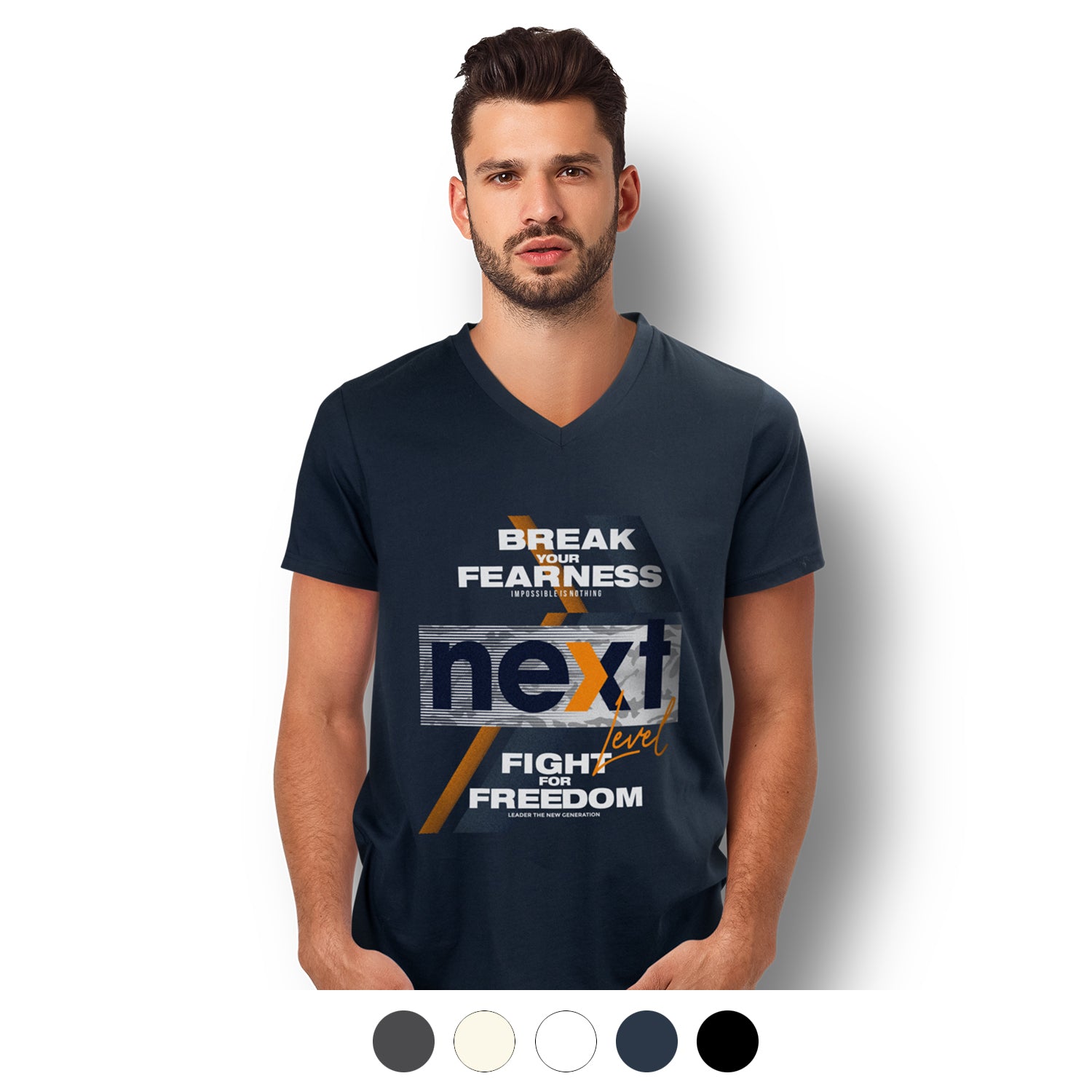Comfortable men's v-neck t-shirt made from 180gsm 100% combed cotton. The tee features a ribbed knit collar with comfortable bias binding inside and a size label. The tee is in Australasian sizing and is available in eight sizes.