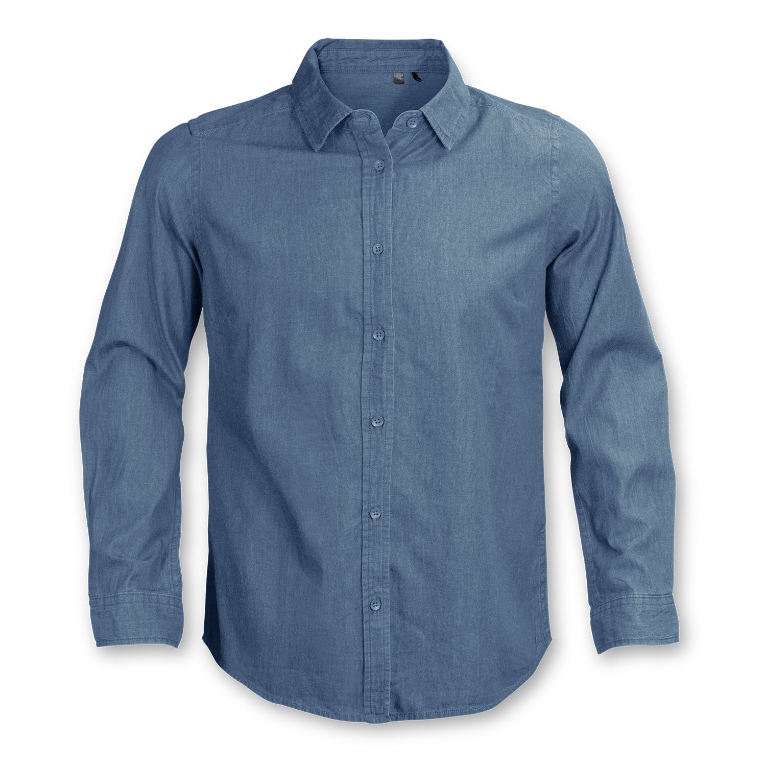 Stylish cut and sewn men's shirt made from soft 150gsm cotton denim, perfect for retail and hospitality workplaces. The shirt is lightly faded and features long sleeves with single button cuffs, a seven-button placket and a classic collar. Available in eight sizes, the shirt should be washed with similar colours before first use.