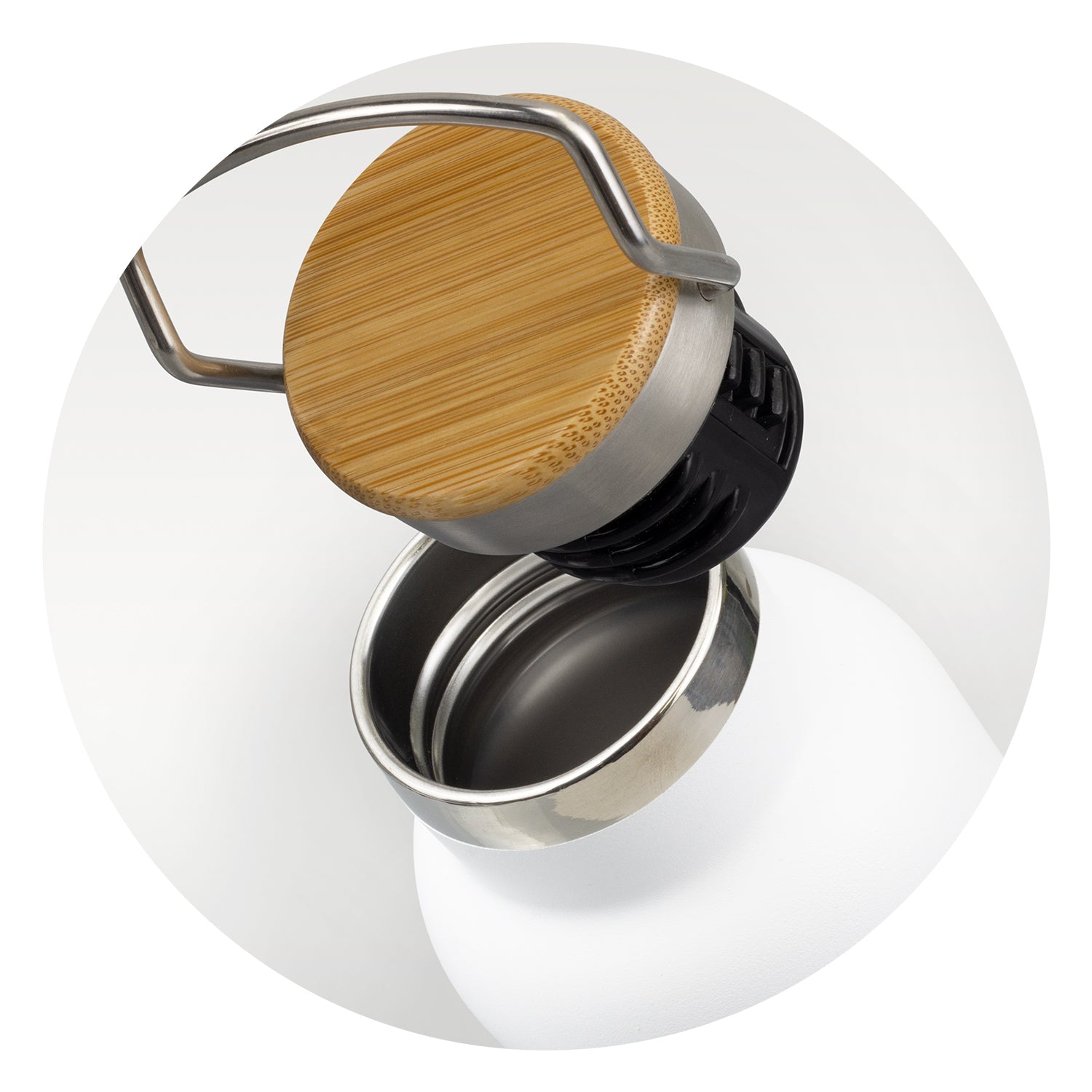 Classic 650ml double wall, vacuum insulated drink bottle with a tough powder coated finish. Made from stainless steel with natural bamboo trim, the bottle has a secure screw on lid with a convenient carry handle. An optional gift tube is available for presentation.