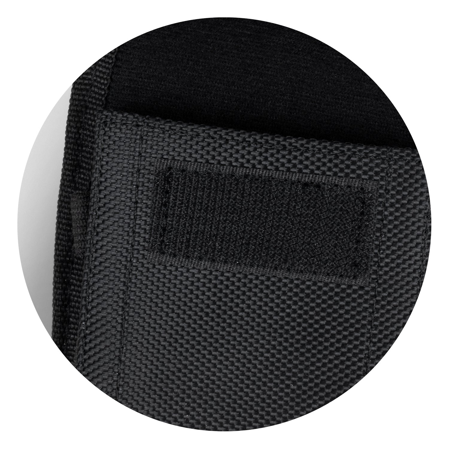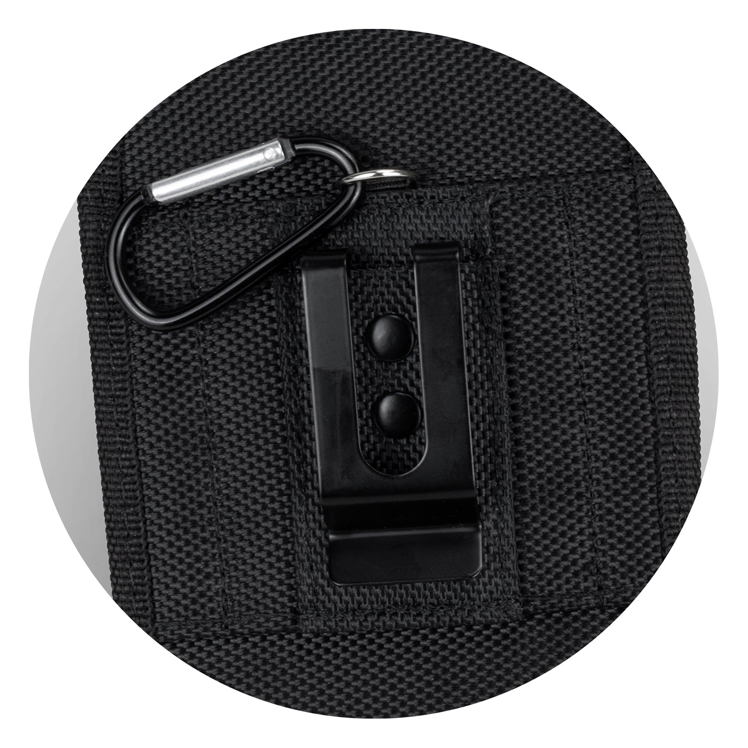 Rugged phone pouch that will fit most modern phones up to 6.8". Made from tough and durable 800D oxford polyester, this phone pouch can be attached to a belt or a bag using the belt clip or carabiner. It also features a handy elastic pen loop and a leather-look PU patch for prominent branding.