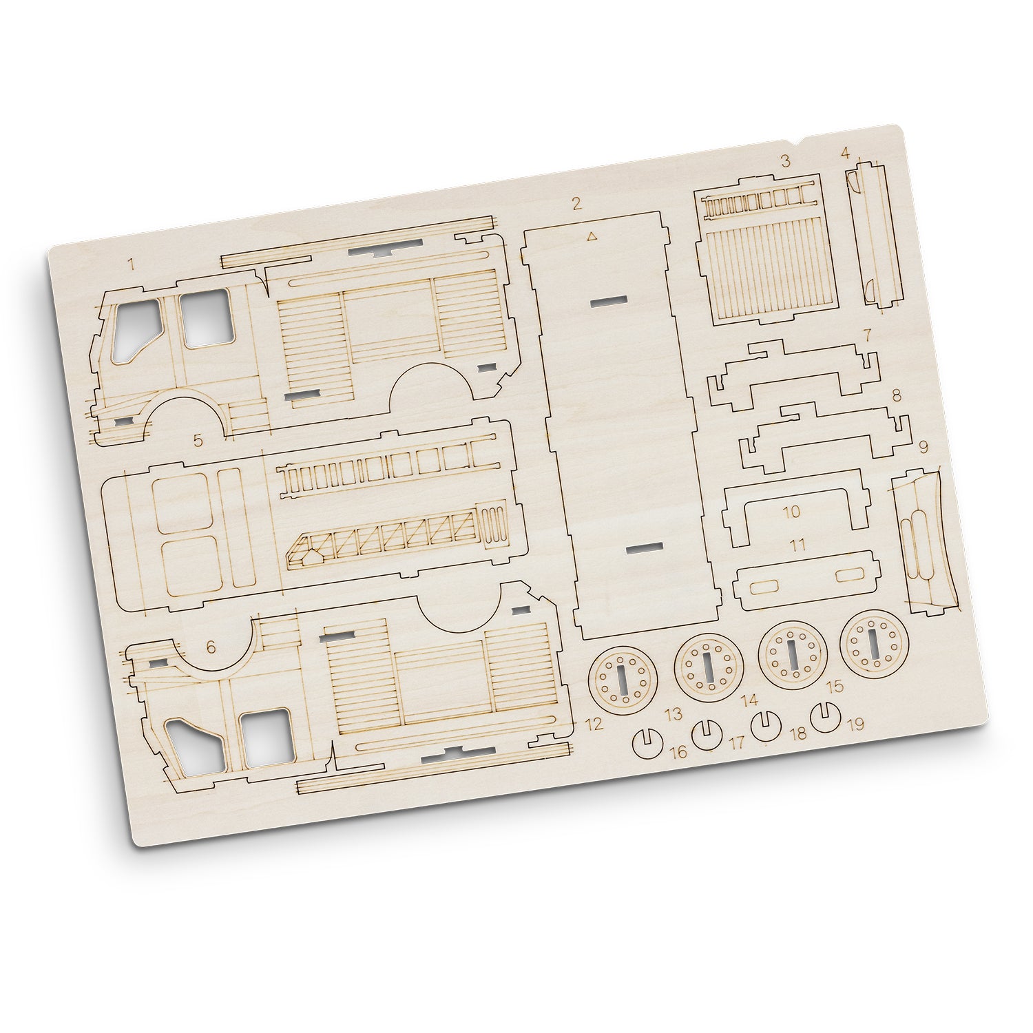 Step into a world of creativity and craftsmanship with BRANDCRAFT's wooden models. Designed to unleash the inner child in any audience, this model fire truck is expertly laser cut from an A4 sheet of Basswood, a lightweight and strong wood perfectly suited for crafting. The interlocking design means that pieces easily slot together and no tools are needed for assembly. Presented in a brandable cardboard sleeve with assembly instructions, this is an engaging promotional product or gift for adults and children alike. Add your brand to the natural Basswood material or overlay on the default digital template to bring your brand to life.