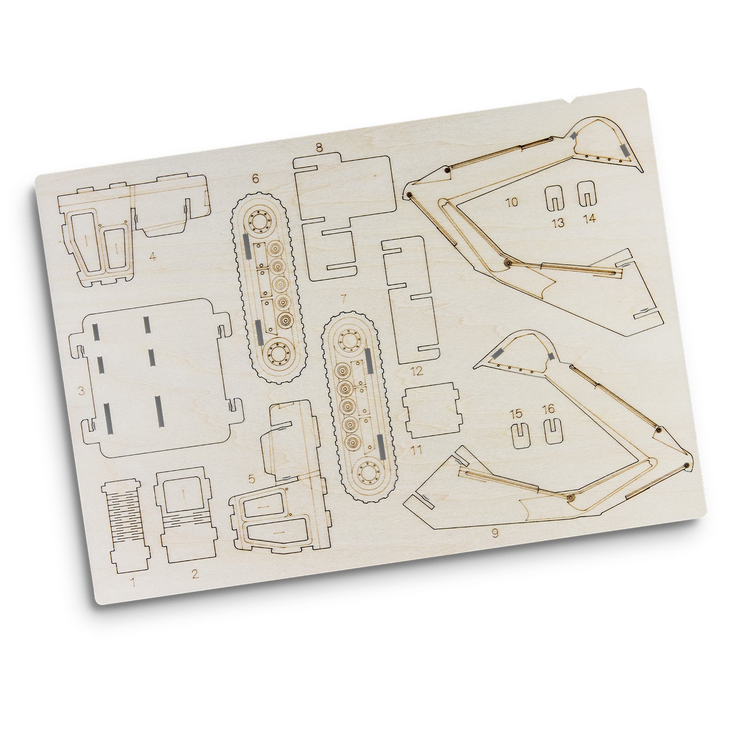Step into a world of creativity and craftsmanship with BRANDCRAFT's wooden models. Designed to unleash the inner child in any audience, this model excavator is expertly laser cut from an A4 sheet of basswood, a lightweight and strong wood perfectly suited for crafting. The interlocking design means that pieces easily slot together and no tools are needed for assembly. Presented in a brandable cardboard sleeve with assembly instructions, this is an engaging promotional product or gift for adults and children alike. Add your brand to the natural Basswood material or add your brand and colours to the default digital template to bring your brand to life.