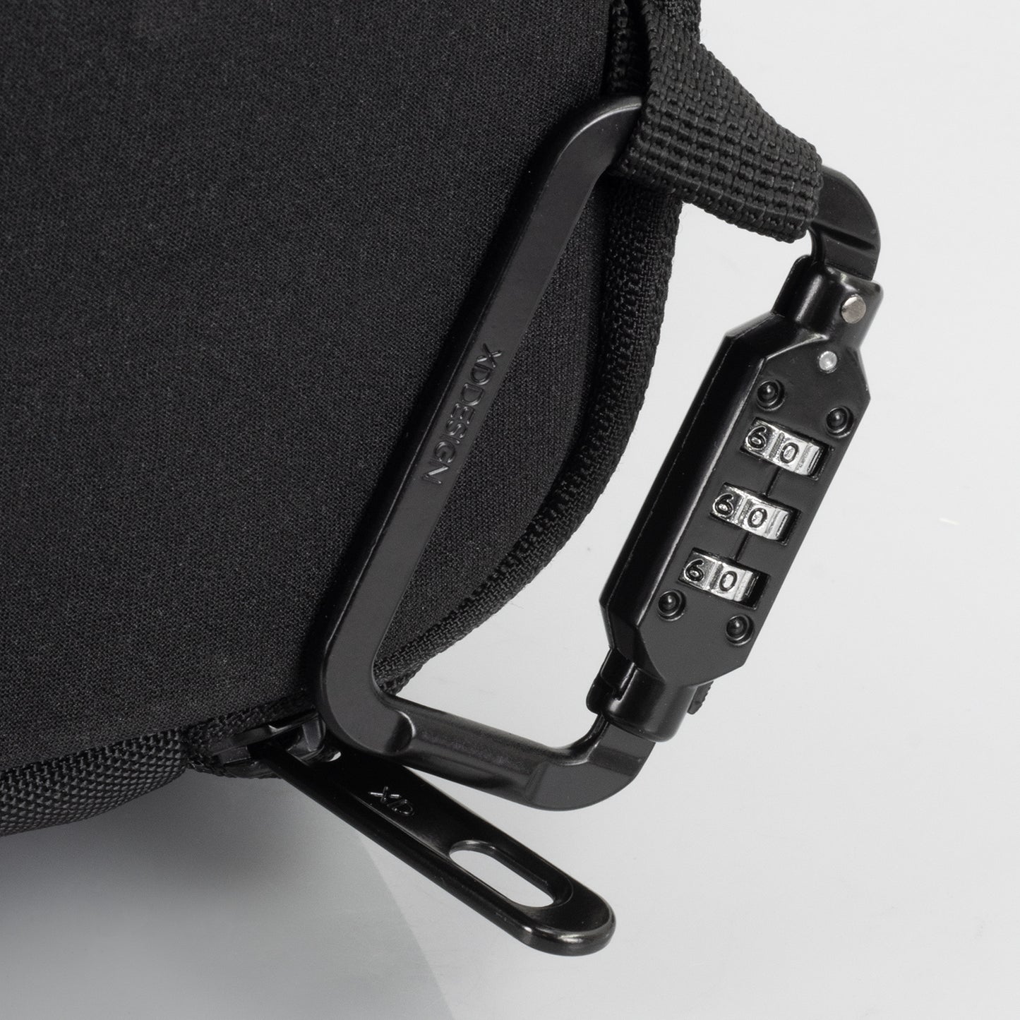 Exceptional 10L anti-theft backpack from XD that doubles as a secure briefcase, keeping belongings safe on daily commutes. Made from high-quality cut-resistant 900D polyester with PU coating and a reflective print, Bizz has two compartments padded with anti-shock foam that will fit a laptop up to 15.6" and a tablet up to 10". Easily attach a power bank to the built-in USB charging port to charge devices on the go. A built-in metal frame helps to protect items and ensure the bag retains its shape on any adventure. With a comfortable carry handle and padded shoulder straps that can be removed and stowed away, this versatile bag features an integrated zinc alloy lock, making it the perfect accessory for anyone on the go.