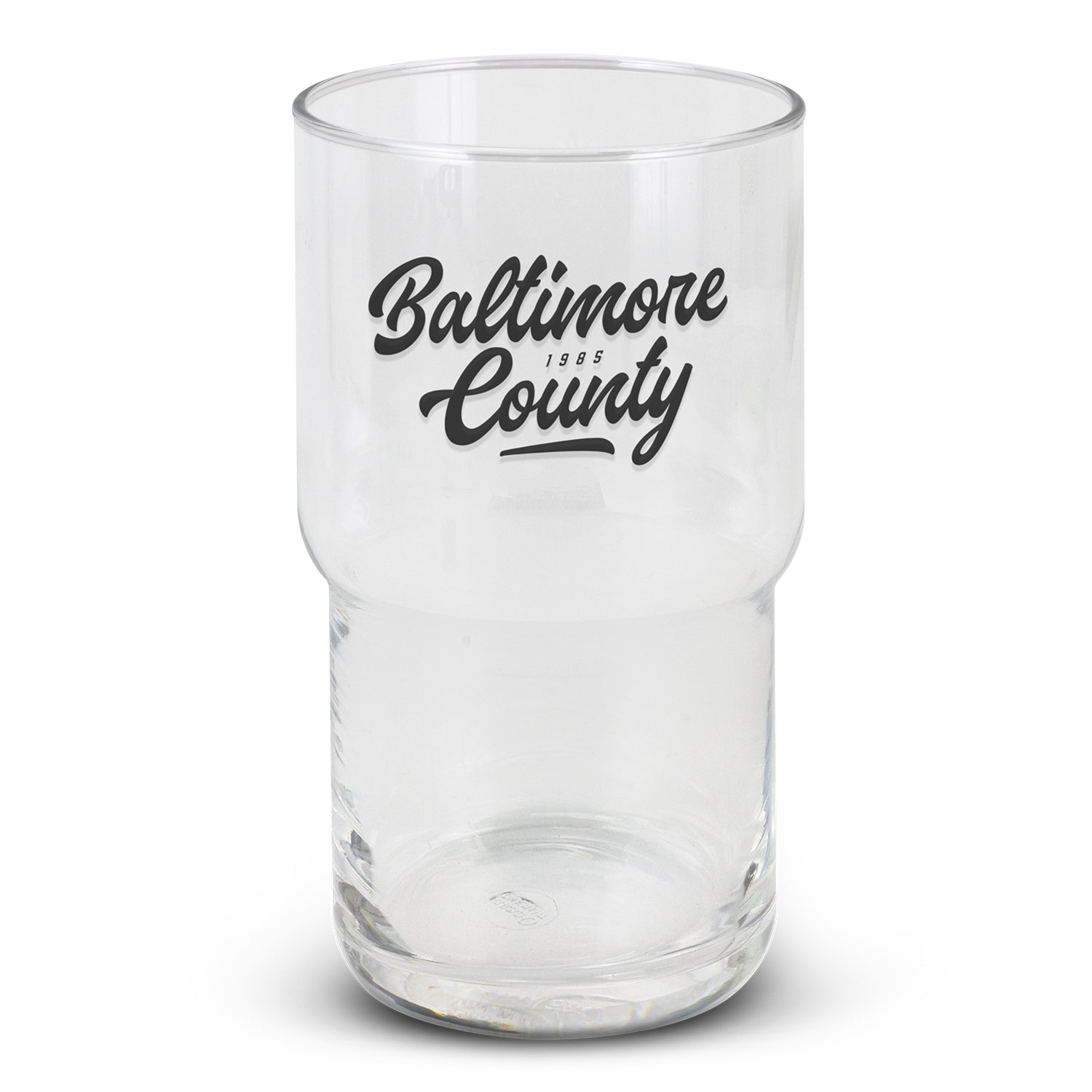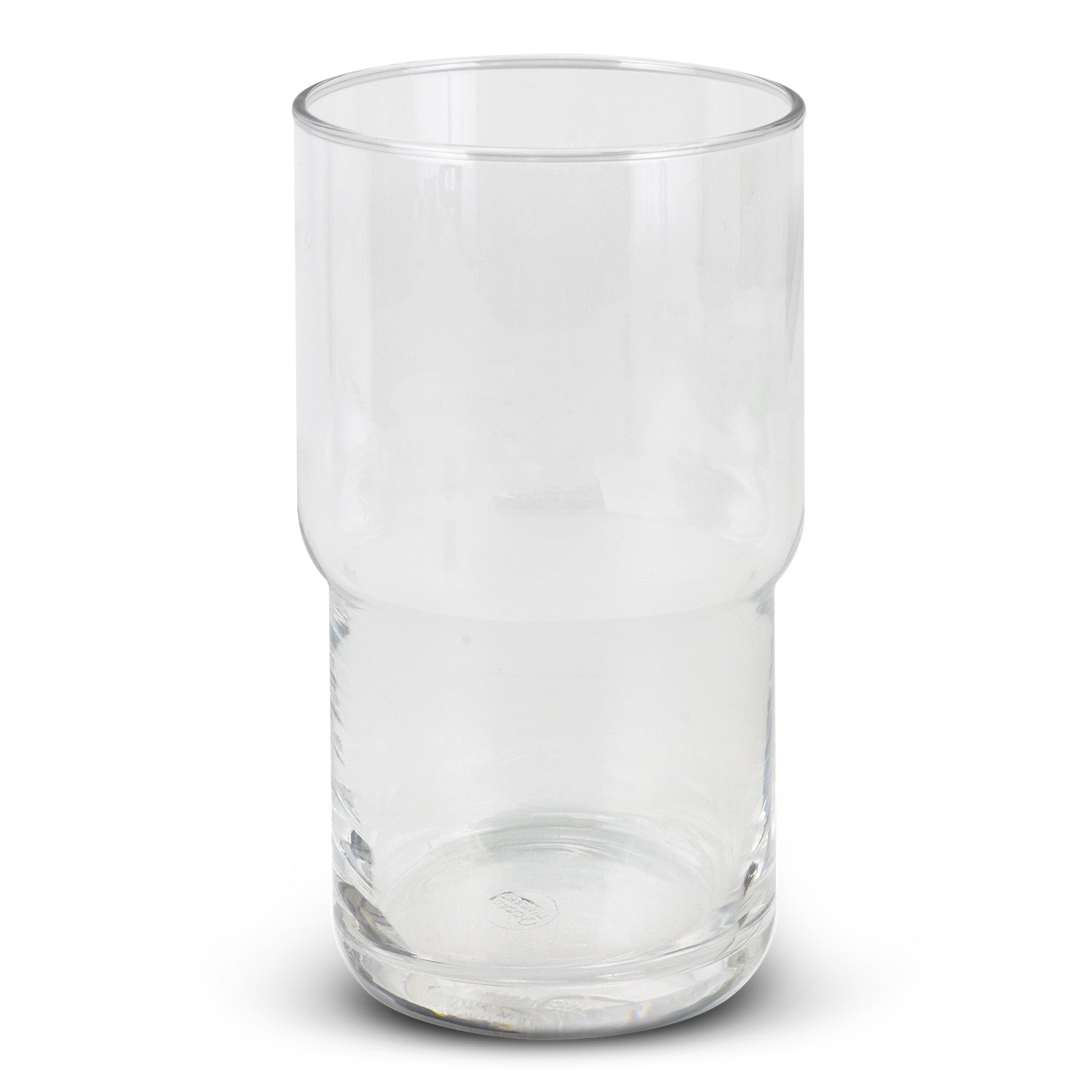 Art-deco inspired 630ml glass tumbler with a stackable design. This tumbler is made with soda lime glass and can be presented in an optional natural gift box.