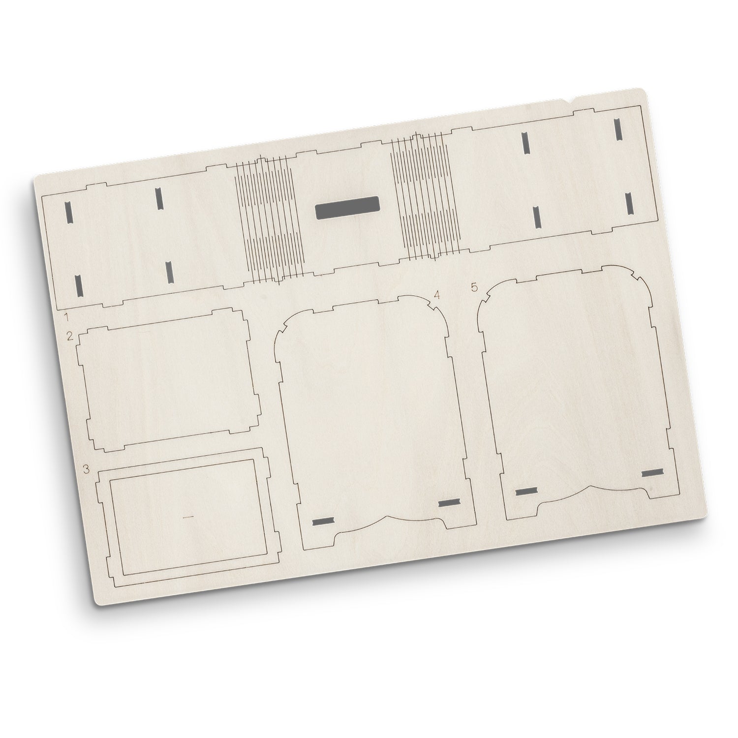 Step into a world of creativity and craftsmanship with BRANDCRAFT's wooden models. Designed to unleash the inner child in any audience, this fully functional model money box is expertly laser cut from an A4 sheet of Basswood, a lightweight and strong wood perfectly suited for crafting. The interlocking design means that pieces easily slot together and no tools are needed for assembly. Presented in a brandable cardboard sleeve with assembly instructions, this is an engaging promotional product or gift for adults and children alike. Add your brand to the natural Basswood material or add your brand and colours to the default digital template to bring your brand to life.