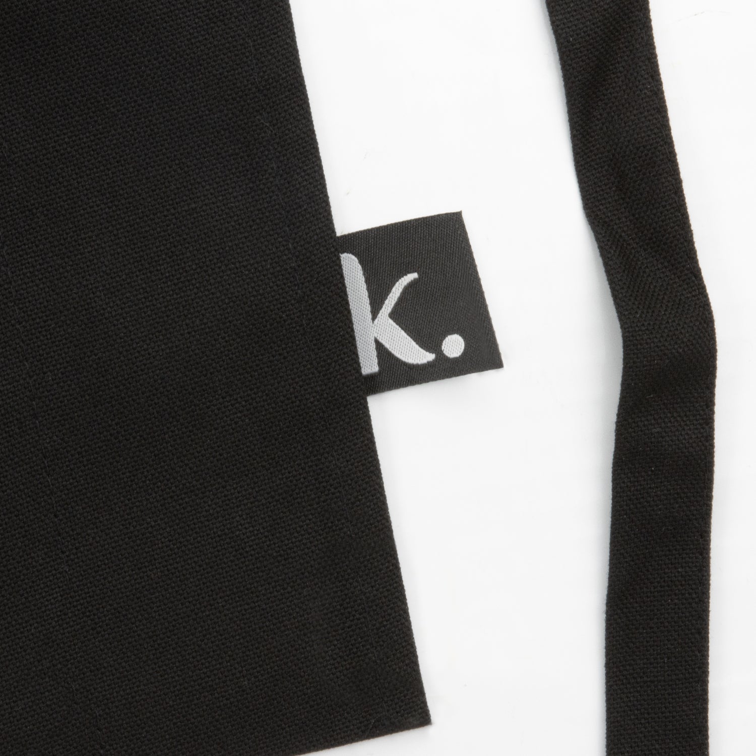 • Black cotton apron with front pockets for storing tools