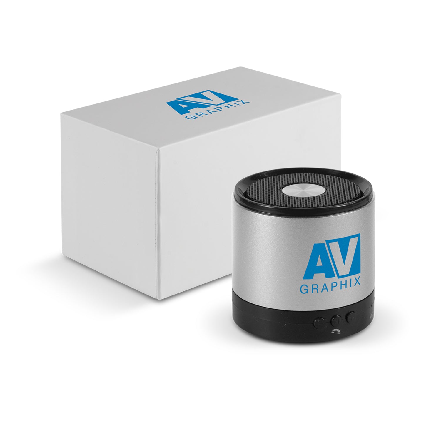Stylish 3W Bluetooth speaker which offers high definition stereo sound and is compatible with all mobile devices that support Bluetooth. It has a wireless connectivity range of over 10 metres and can also be used with an audio cable. Playing time is 3-4 hours and it is easily recharged from a laptop, a power bank or a USB mains adapter. It has a microphone for phone calls and music playback can be controlled directly from the speaker. Polaris is presented in a gift box with a Micro-B USB cable, an audio cable and an instruction leaflet. The silver speaker engraves to a natural etch finish.
